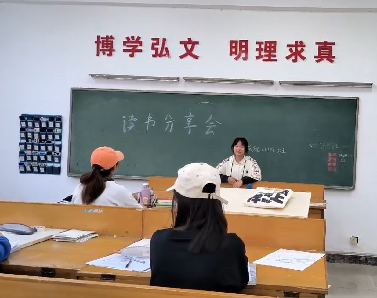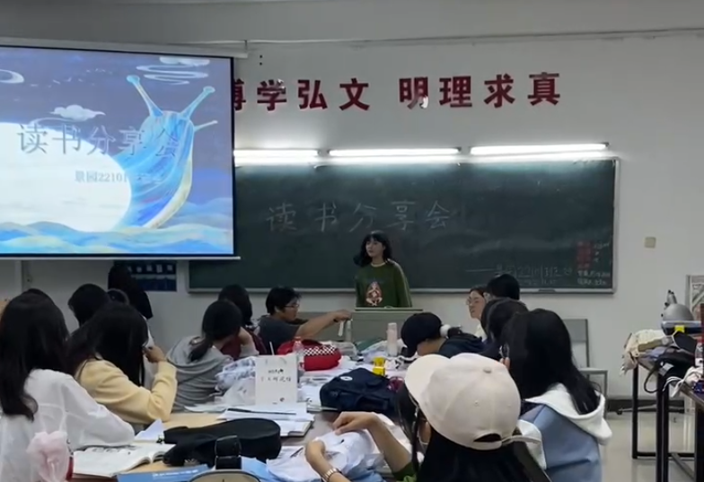 之后,各班级在班级内部也相继组织同学们举行了读书交流活动。大家一起分享自己的读书心得体会,交流书中的经典片段,在活动中加强彼此之间的了解,增进友谊,增强集体凝聚力,同时激发大家对读书的热情。听众可以针对自己感兴趣的部分对分享者进行提问交流,分享者也可指定在座同学回答在分享过程中的关键问题,让同学们积极参与互动。