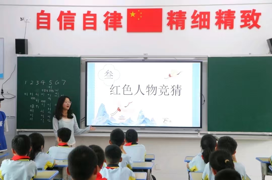 在“红色人物竞猜”环节中,同学们通过剪影和线索提示,踊跃竞猜毛泽东、周恩来、鲁迅、丁玲、雷锋等红色人物。这一环节不仅考验了同学们的知识储备,更让大家在趣味中学习了红色历史,感悟了革命先辈们的坚定信念和崇高精神。在活动尾声,全体师生共同朗诵了毛泽东同志的《卜算子·咏梅》。铿锵有力的朗诵声回荡在校园中,激励着同学们以乐观向上的精神面对学习生活中的困难和挑战。