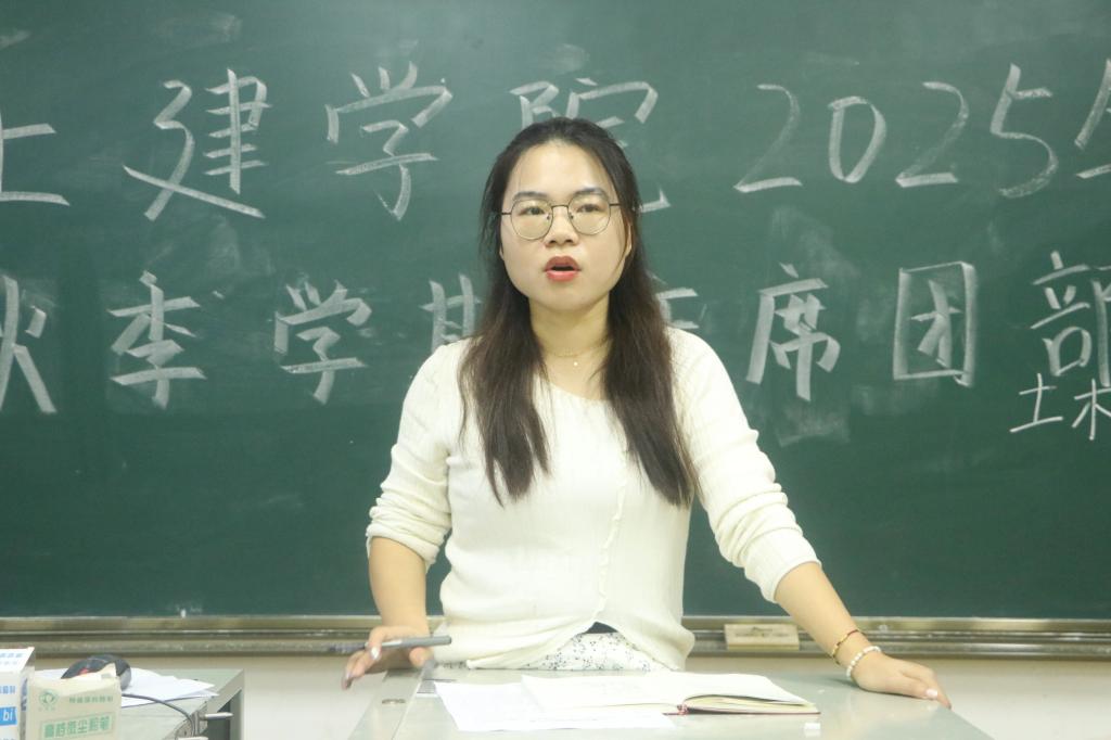 会议第四项,黄思清老师围绕新学期考核工作与基础事务推进进行讲话。她首先对全体干部在开学初期高强度工作中的辛勤付出给予肯定。同时,她提醒大家要及时调整状态,以积极饱满的热情应对后续的任务挑战。此外,她着重强调,学院日常考核、流动红旗评比、自律分会评比等考核工作,需依托材料提交、日常检查等基础事务扎实推进,全体干部需进一步提质增效,确保基础工作落实落细。
