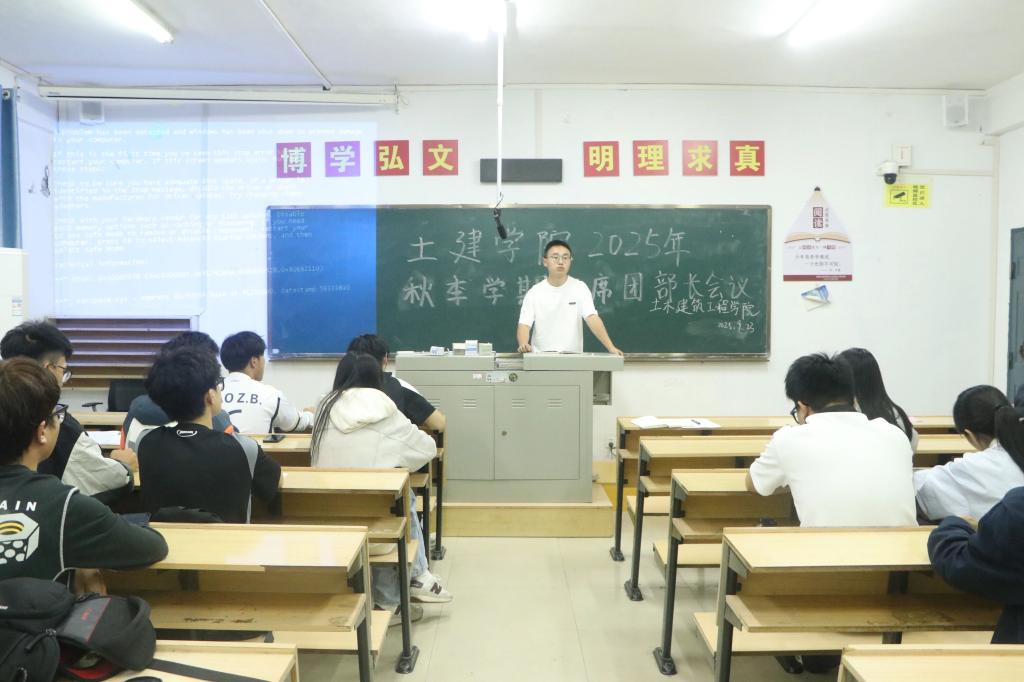 为统筹新学期学生工作推进,明确任务方向、夯实工作基础,9月23日,土建学院于土建楼A402召开2025年秋季学期第一次主席团部长工作会议。学院党委副书记刘国灿老师、学工办主任黄思清老师、学工办陈倩老师、易烁文老师出席会议,主席团及部长参会。本次会议由舒宁同学主持。