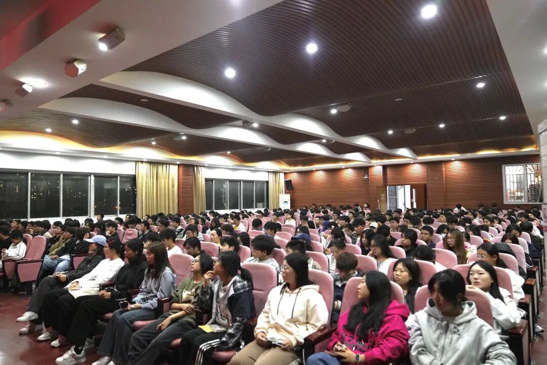 随后,他围绕入伍政策、报名条件及流程展开解读,重点介绍部队发展路径、核心优势与优待政策,号召同学们积极投身国防事业,为国家军事力量建设贡献青春力量。