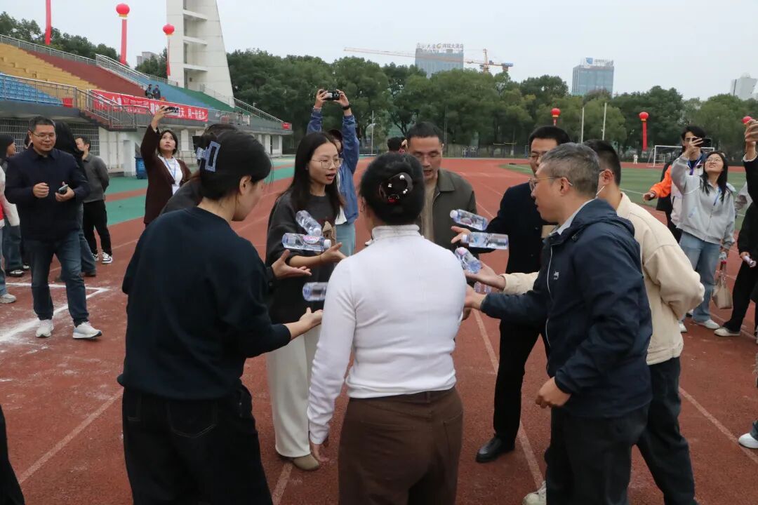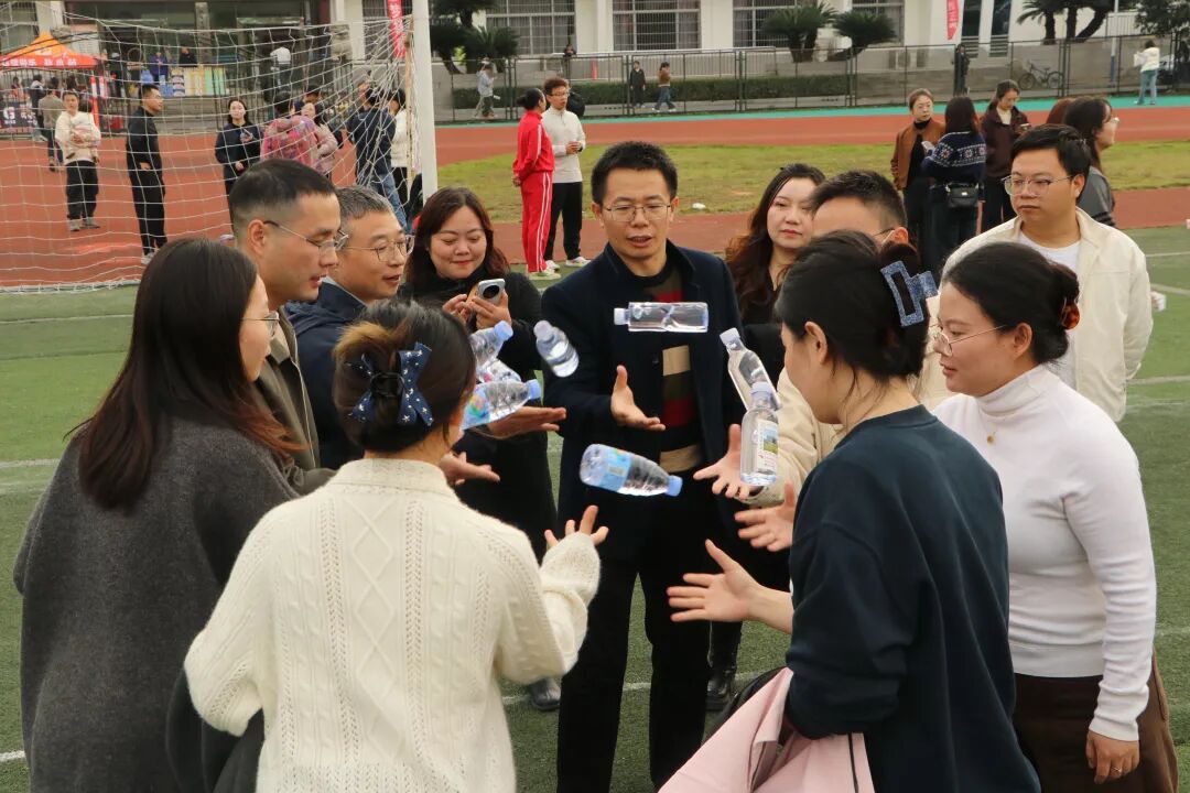 水瓶在老师们手中快速传递,大家反应敏捷、配合无间。从接收到传递,动作一气呵成,每一次无缝衔接都彰显着团队的凝聚力,让协作精神在赛场闪闪发光。