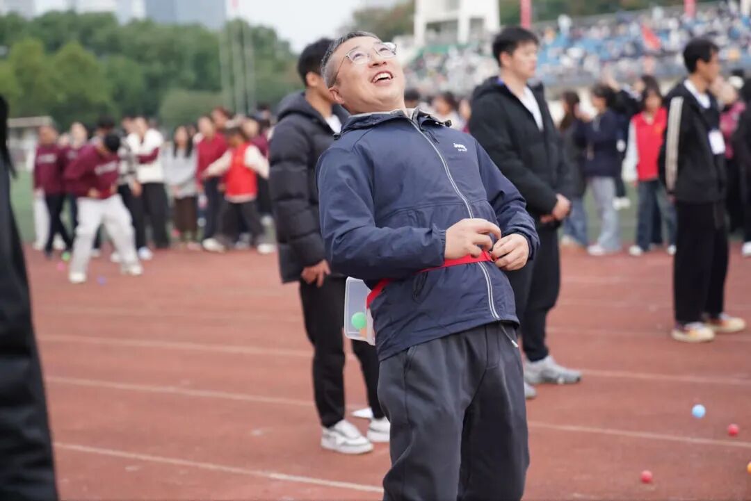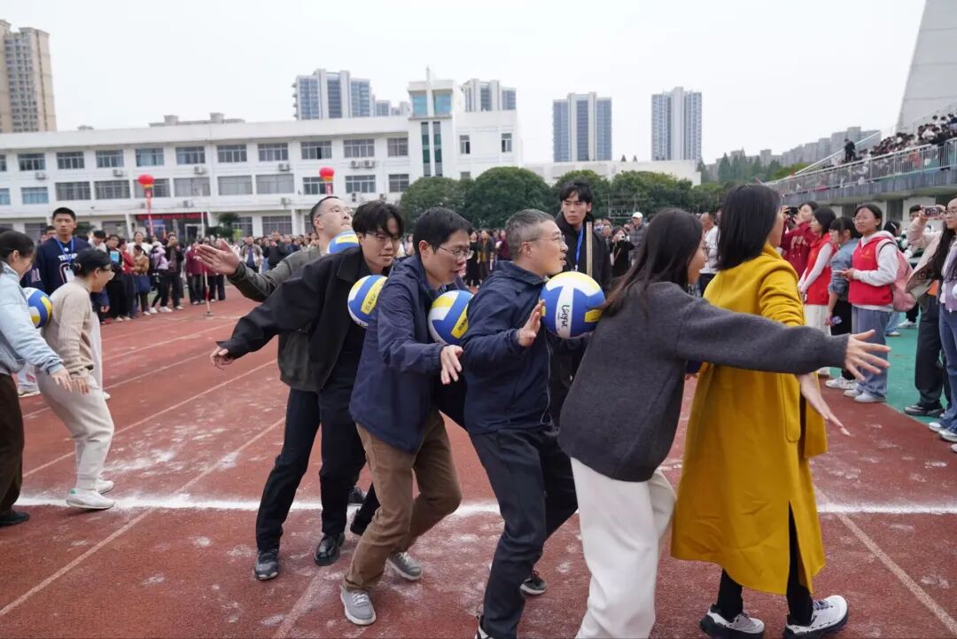 老师们紧密相拥,共同托举圆球稳步前行。大家步调一致、口号相和,在欢声笑语中攻克难关,将团队协作的真谛展现得淋漓尽致,让赛场洋溢着欢乐与温情。