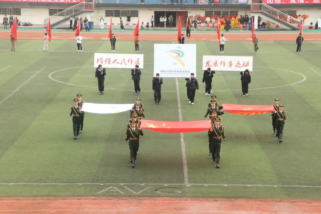 伴着激昂的运动员进行曲,国旗护卫队、各学院方阵依次入场。