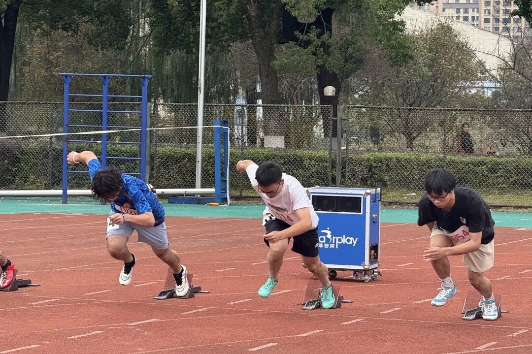 起跑线前,选手们蓄势待发、目光如炬。发令枪声响彻赛场,八道身影同步弹射而出,他们摆臂如风、踏步如雷,在百米赛道上与时间竞速,用飞驰的脚步勾勒出热血昂扬的青春模样。
