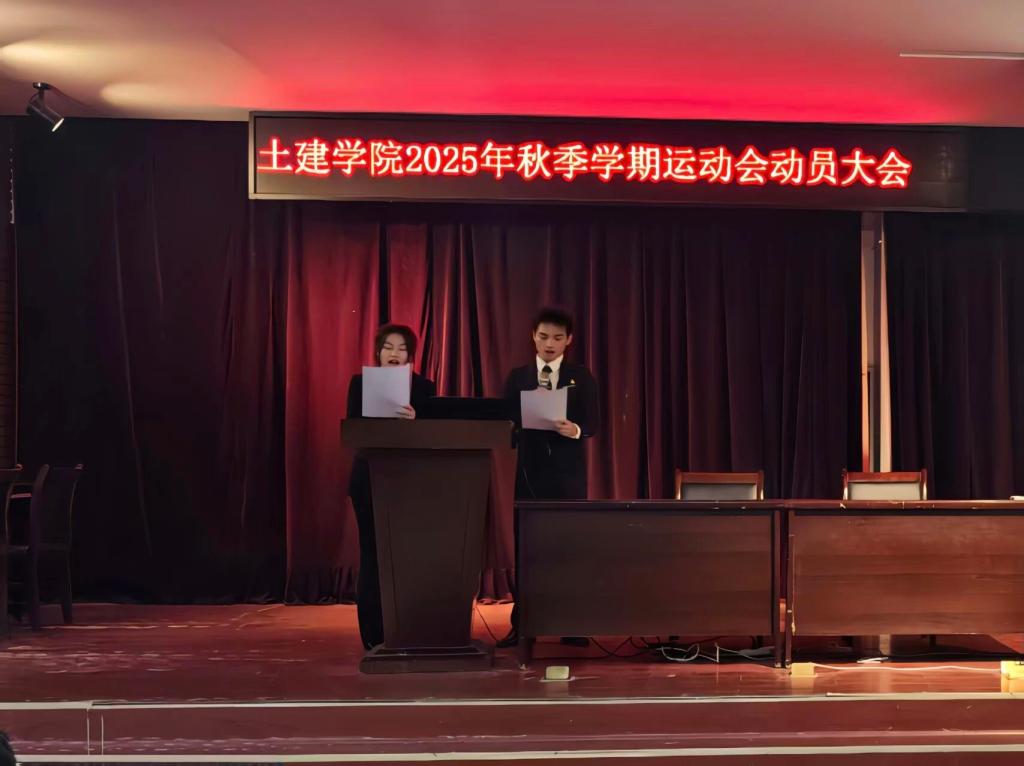 为加强学生干部队伍建设,动员师生积极备战运动会,凝聚集体力量,11月6日晚,土建学院于东校区第一实验楼五楼报告厅召开了2025年秋季学期第一次全体院干大会暨校运会动员大会。学院党委副书记刘国灿、学工办主任黄思清、学工办罗泽元出席了本次会议,学院全体院干、25级三大班委。本次会议由城规25102班颜好、土木25102班李禹滴主持。