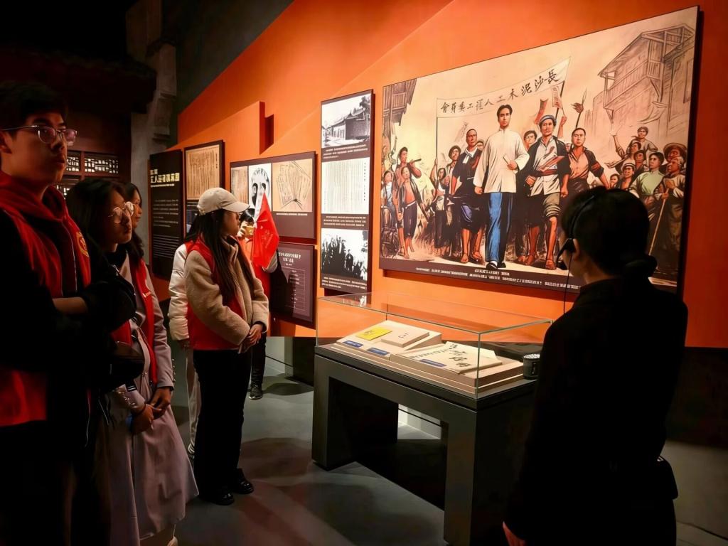 交流团首站抵达中国共产党长沙历史馆。在讲解员引导下,志愿者们驻足于泛黄的历史照片与承载记忆的革命文物前,重温长沙红色征程:从新民学会的革命火种,到抗日战争的浴血坚守、新时代的蓬勃发展,一段段波澜壮阔的历史铺展开来。志愿者们不时驻足记录、低声交流,深刻体悟中国共产党人的初心使命,红色基因在沉浸式学习中深深根植。