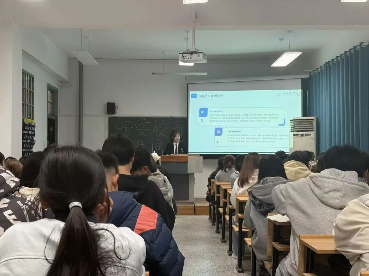 接着,吴畅同学针对重点安全领域提出明确规范。在交通安全方面,她明确电动车须登记挂牌,校内限速15公里/小时,严禁占用消防通道与违规充电。在消防安全方面,她强调宿舍内严禁私拉电线、使用违规电器,同时提醒同学们坚决杜绝 “飞线充电” 等高危行为,携手共同维护宿舍安全环境。