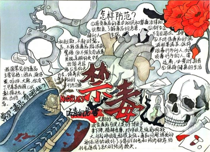 在创意手工制作环节,同学们将禁毒理念融入艺术创作,通过手抄报、警示海报、创意模型等形式,生动揭示毒品的隐蔽性与危害性。这些作品直观鲜明,让师生在欣赏与交流中深化对禁毒知识的理解,进一步筑牢禁毒思想防线。