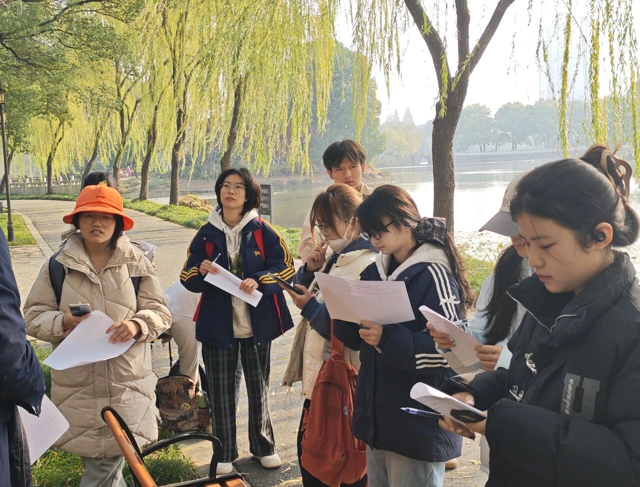 讲解结束后,同学们分组展开行动,携带工具奔赴常德大道、武陵大道、穿紫河沿岸、丁玲公园等片区,认真勘查、详细记录,确保数据的真实可靠性,在实操中巩固专业素养,为后续江北城区绿地白蚁的系统排查与科学防治收集重要的一手资料。