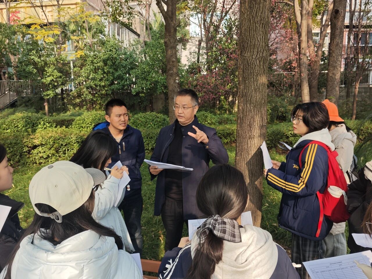 为深化学生实践能力培养,助力城市绿地生态健康管理,12月17日上午,土建学院满天星志愿服务队十余名风景园林专业志愿者在顾建中副院长的带领下,联合常德市园林绿化服务中心,共同开启了为期一周的常德市江北城区绿地白蚁危害调查实践活动。