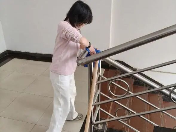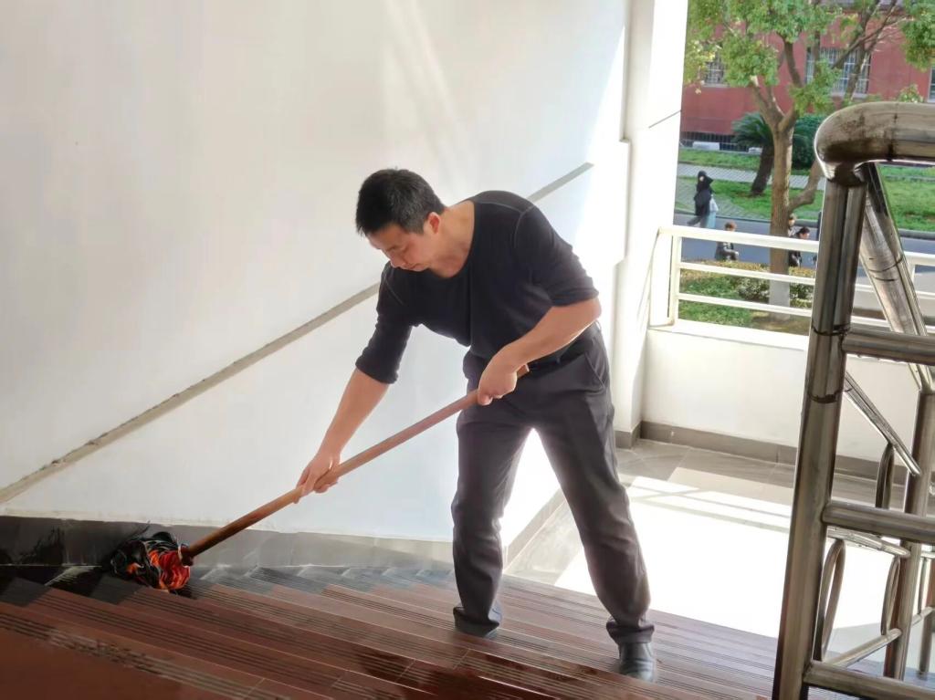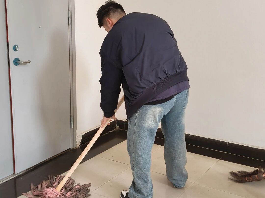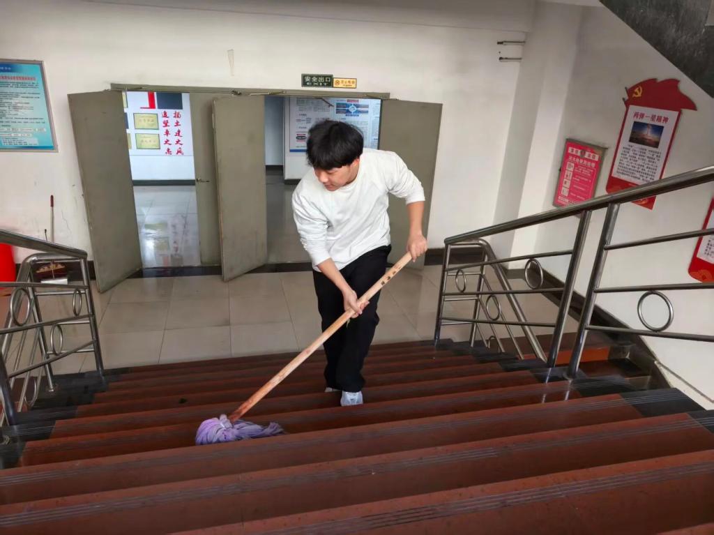 下午两点,活动正式开始。师生准时集合,在明确分工、强调安全注意事项后,迅速奔赴各自负责的清扫区域。学生党支部成员在刘国灿副书记的带领下,负责西侧楼梯及连廊的清洁任务,细致清理角落杂物、擦拭扶手。勤工俭学同学在老师组织下有序清扫其余区域,老师们穿梭各点位,一边参与劳动,一边现场指导。同学们分工协作,不怕脏累,擦门窗、扫地面、清蛛网,干劲十足。劳动现场热火朝天,师生齐心协力,用实际行动为校园环境添一份洁净,也让雷锋精神在春日校园里熠熠生辉。下午两点,活动正式开始。师生准时集合,在明确分工、强调安全注意事项后,迅速奔赴各自负责的清扫区域。学生党支部成员在刘国灿副书记的带领下,负责西侧楼梯及连廊的清洁任务,细致清理角落杂物、擦拭扶手。勤工俭学同学在老师组织下有序清扫其余区域,老师们穿梭各点位,一边参与劳动,一边现场指导。同学们分工协作,不怕脏累,擦门窗、扫地面、清蛛网,干劲十足。劳动现场热火朝天,师生齐心协力,用实际行动为校园环境添一份洁净,也让雷锋精神在春日校园里熠熠生辉。