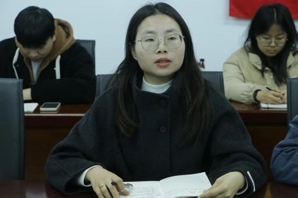 会议第三项,陈倩老师作工作部署。她对自身工作调整相关事宜进行说明,明确其将分管团务工作、班会材料审核、学生资助等相关事务。她要求各部门对接团务工作时要高效沟通、精准落实,班会材料需按时提交、规范整理;学生资助工作要严把审核关,确保政策落实到位、信息准确无误,切实做好学生服务工作。