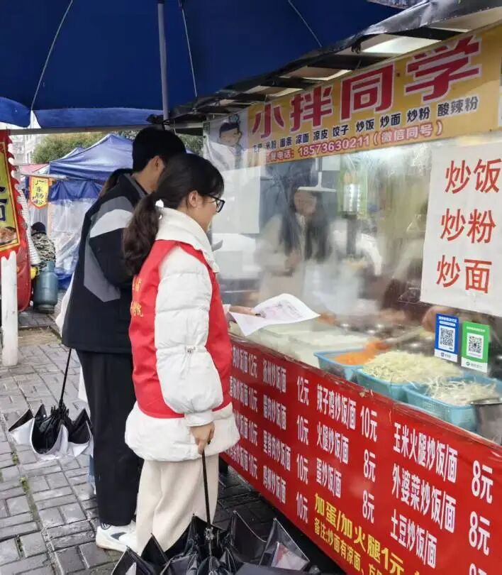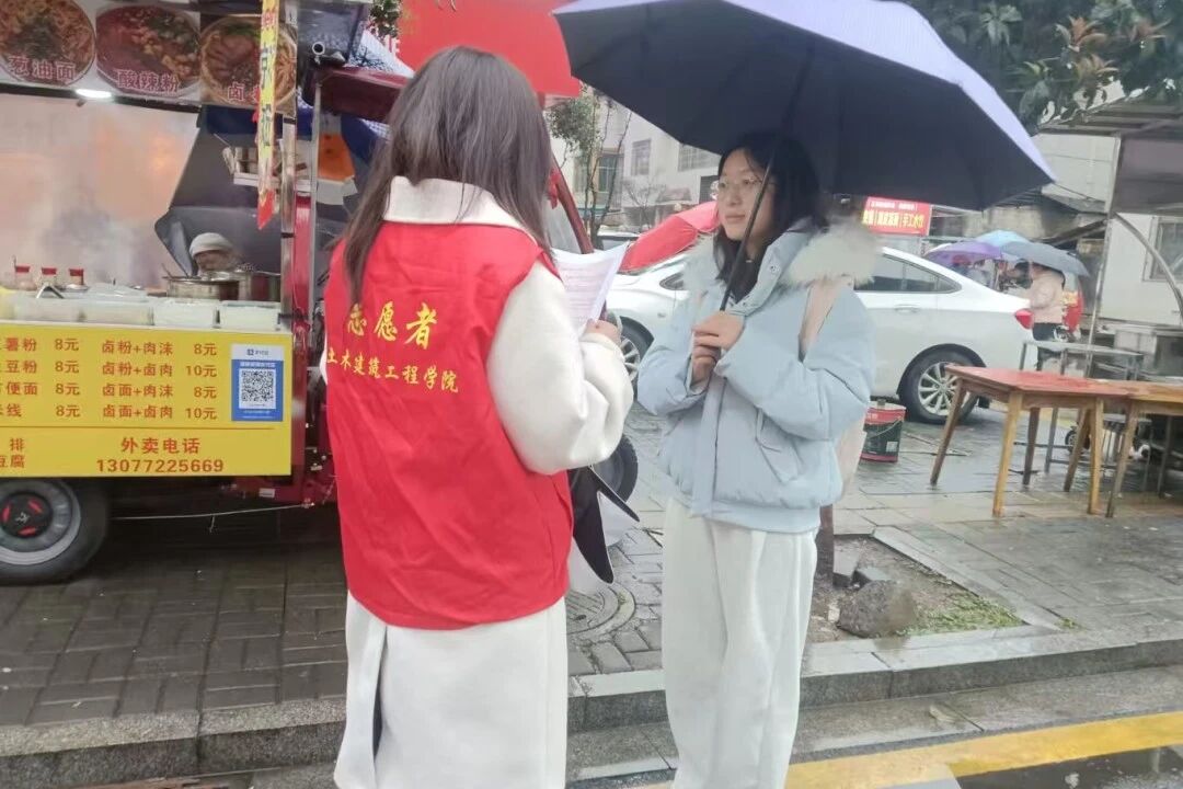 走出社区,志愿者化身接地气的“文明宣传员”,主动走向过往路人、路边同学和沿街摊贩,用真诚的笑容和亲切的话语开展宣讲。内容涵盖3·15消费维权、文明餐桌、光盘行动、网络安全、理性消费等多个方面,志愿者们讲得通俗易懂,不仅提升了大家的文明意识和安全防范能力,也让文明新风悄然走进街头巷尾。