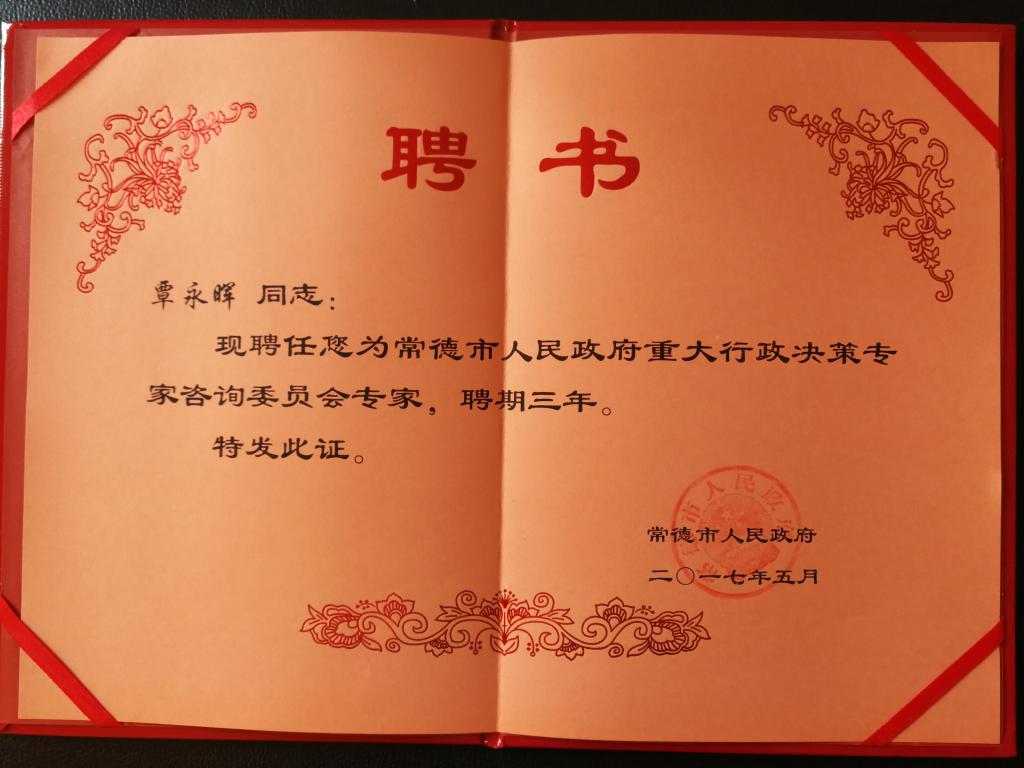 据常德市人民政府常政办涵(2017)45号文《常德市人民政府办公室关于调整常德市重大行政决策专家咨询委员会组成人员的通知》,我院副院长、硕士研究生导师、教授覃永晖同志被聘为“常德市人民政府重大行政决策专家”。
