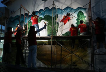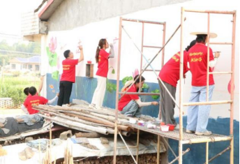丹青妙笔绘美景,艺韵悠然润乡村。实践队员们化身乡村“美容师”,以画笔为媒、以墙面为布、以方格为尺,将乡村特色与文化审美相结合,在斑驳的墙面上勾勒出一幅幅展现乡村振兴成效、文化浸润心灵和良好乡风民俗的美丽图景。高洁莲花、古韵松柏、金灿脐橙、绽放油茶、喜悦丰收等栩栩如生的画面跃然于村舍墙面,将振兴蓝图、文明新风与湖湘文化向村民生动传递,让无声白墙成为传播美展示风尚的窗口、诉说振兴故事的画卷,为村庄注入蓬勃朝气与文化艺术气息。
