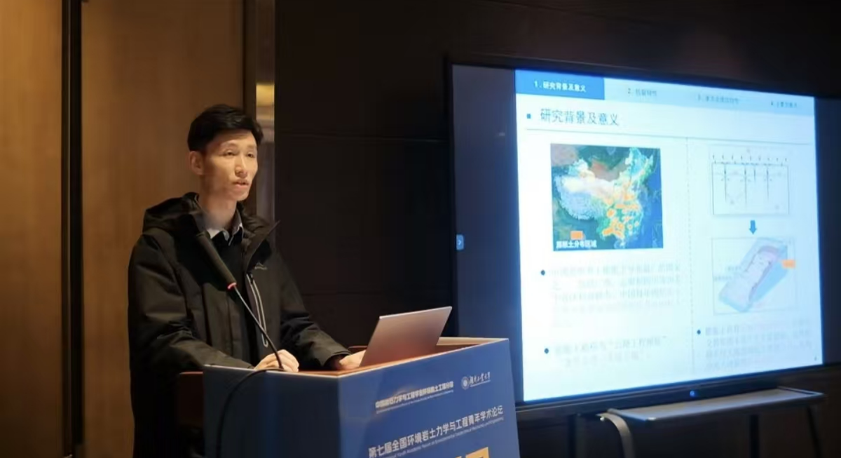 2025年11月22日至23日,七届全国环境岩土力学与工程青年学术论坛在湖南株洲召开。论坛立足国家“双碳”战略部署,聚焦岩土工程与生态环境协同发展核心方向,为全国该领域专家、青年学者及学子搭建了高端学术交流平台。论坛大咖云集、星光熠熠,业界顶尖专家学者齐聚株洲。中国工程院周创兵院士亲临现场指导交流,刘汉龙院士委托团队成员史金权教授作现场报告,王明洋院士通过线上形式分享前沿研究成果。土建学院教师欧阳淼博士受邀参加。