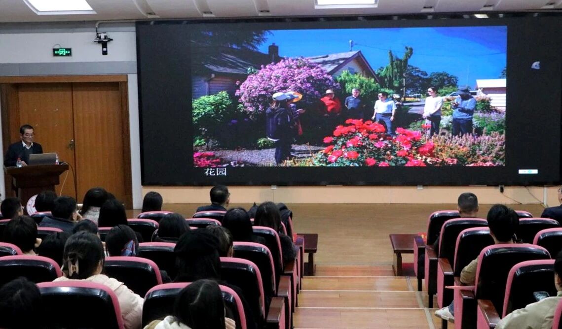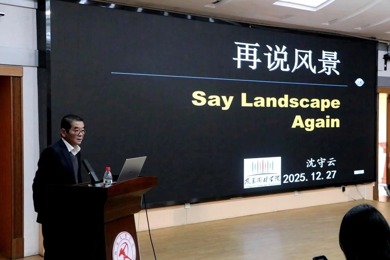 为深化风景园林设计领域产学研协同创新,赋能公园城市战略落地实践,12月27日,中南林业科技大学风景园林学院原院长,湖南省风景园林学会理事长沈守云教授应邀走进湖南文理学院土木建筑工程学院,与学院师生开展主题交流活动,围绕“再说风景”这一核心议题,带来一场兼具理论深度与实践温度的学术分享。土建学院院长覃永晖、副院长顾建中出席了学术报告会,学术报告会由覃永晖主持。土建学院师生参加了学术交流。