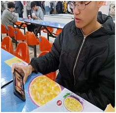 在食堂用餐间歇,土建学子认真观看征兵宣传视频,了解国防知识。