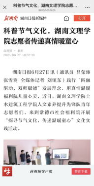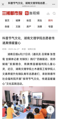 土建学院学生联手福利院开展的 “探寻节气文化,传递温暖童心” 文化实践活动被湖南日报、三湘都市报等媒体报道。