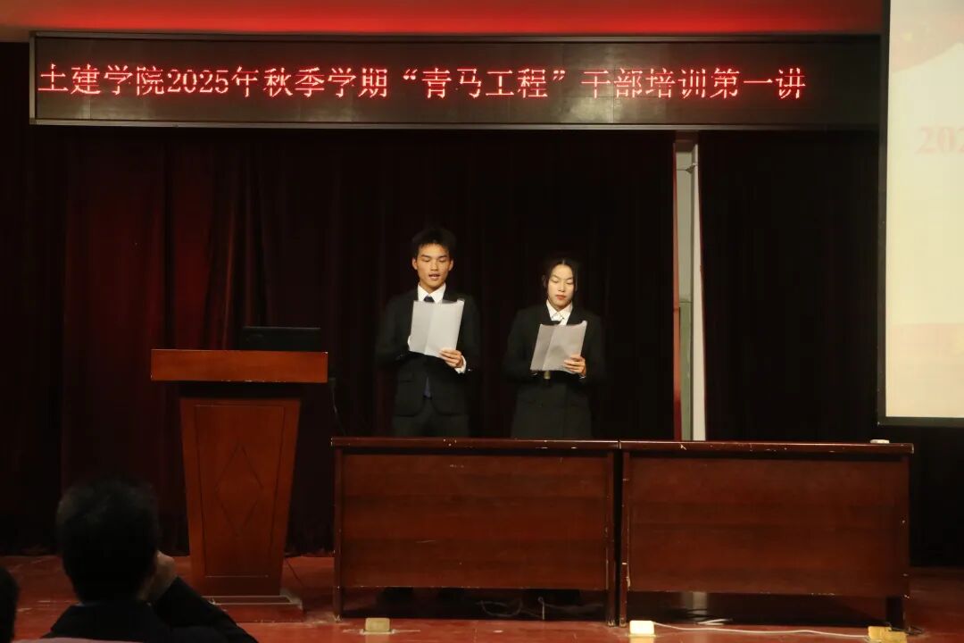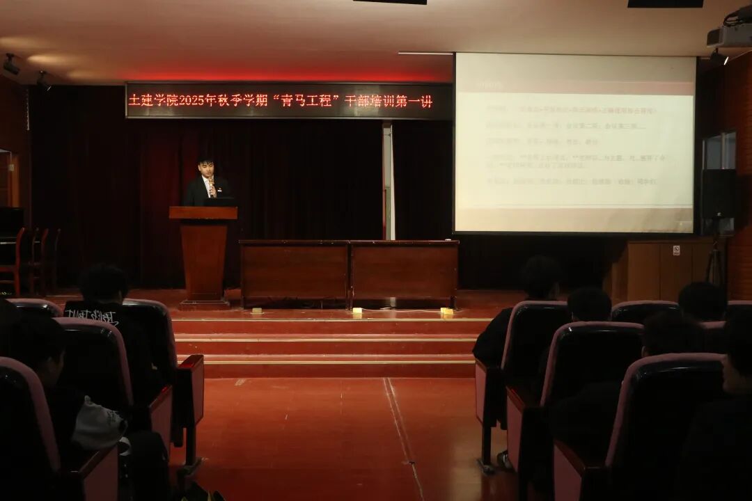 为进一步增强学院学生干部宣传工作能力,提高新闻宣传质量与传播效能,11月6日晚,土建学院于东校区第一实验楼五楼报告厅举办2025年秋季学期“青马工程”干部培训第一讲。学院党委副书记刘国灿、学工办主任黄思清、团总支书记罗泽元出席本次会议,学院全体院干、25级三大班委、2025级秋季学期入团积极分子参加本次会议。本次会议由城规25102班颜好、土木25102班李禹滴主持。