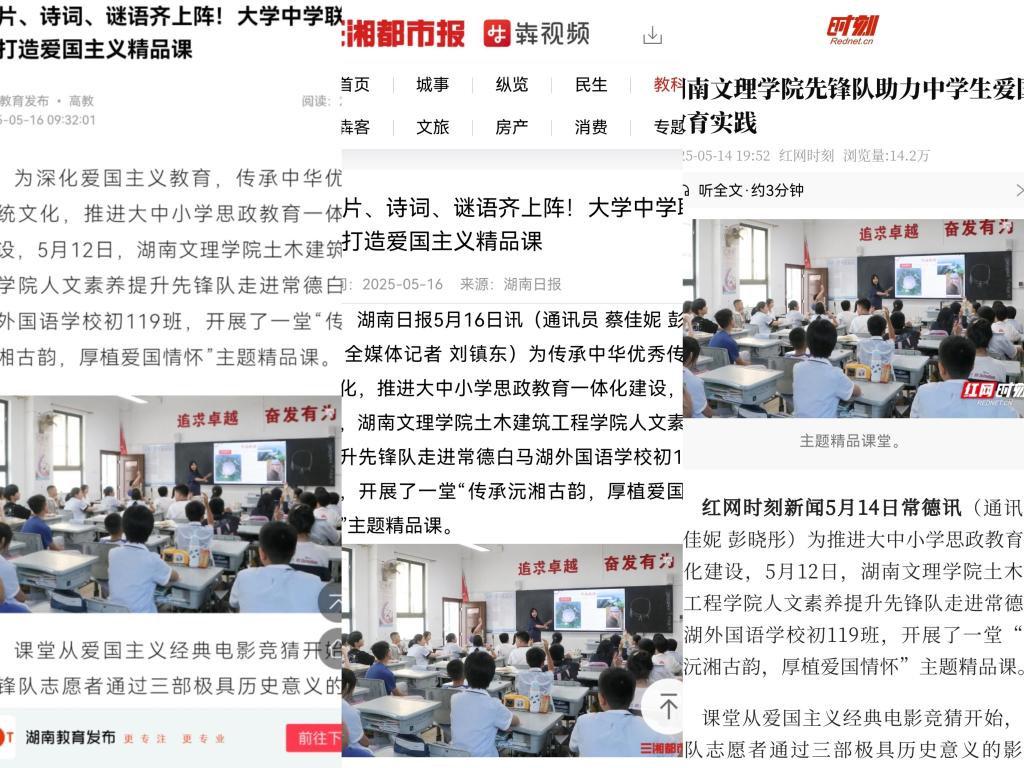 先锋队指导老师刘双表示,此次文化实践活动打破传统课堂边界,让大学生与中学生一起在沉浸式体验中感悟爱国主义精神,为校园课堂注入了浓厚的文化气息。土建学院将持续深耕常德本土红色文化与历史底蕴,创新开展更多形式鲜活、内涵深刻的“党建+文化”实践活动,让爱国主义精神在青少年心中落地生根、枝繁叶茂。(一审:李西阳 二审:罗泽元 三审:刘国灿)