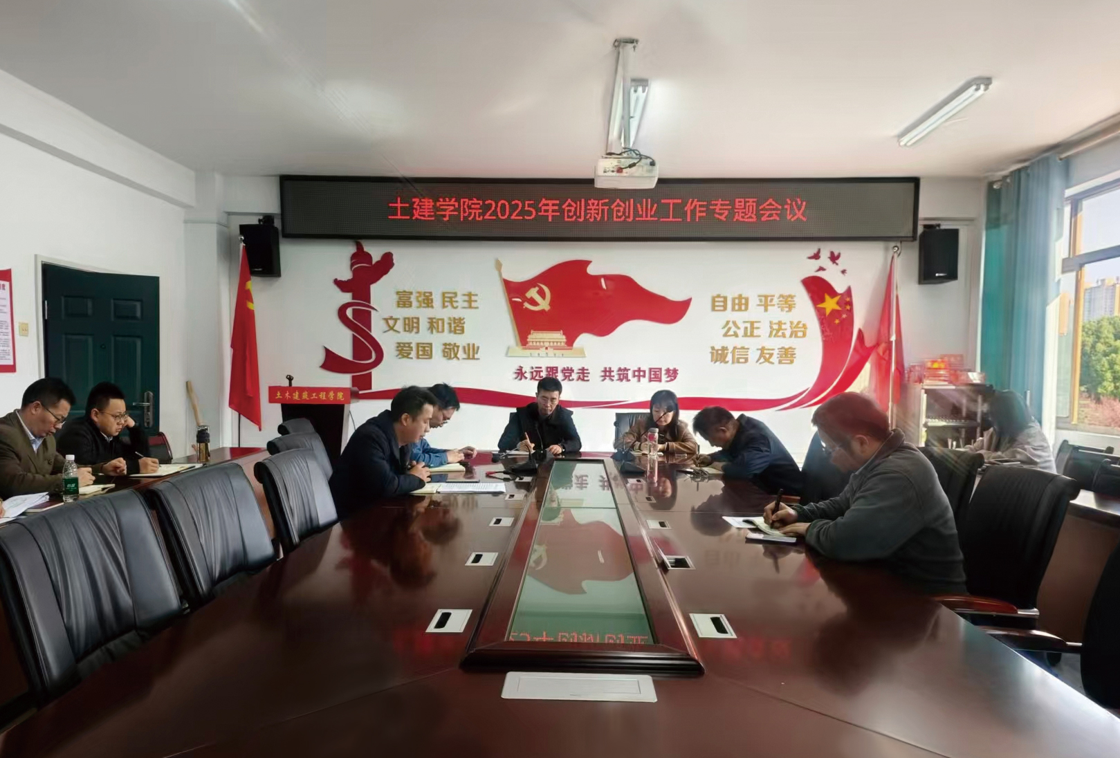 为深入贯彻落实国家创新创业教育改革要求,认真落实省委省政府关于支持大学生创业“七个一”部署要求,不断提高创新人才培养质量,10月23日,土木建筑工程学院在土建楼A318会议室召开党政联席会议,专题研讨学院创业创新工作。学院院长覃永晖、党委书记刘双、副院长杨光、副院长顾建中、党委副书记刘国灿出席会议,各系部科室负责人、创新创业导师及创新创业专干参加会议,会议由学院院长覃永晖主持。