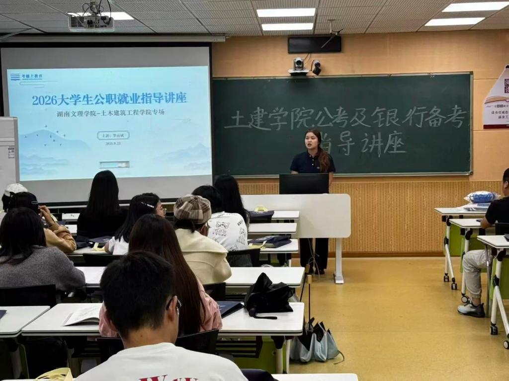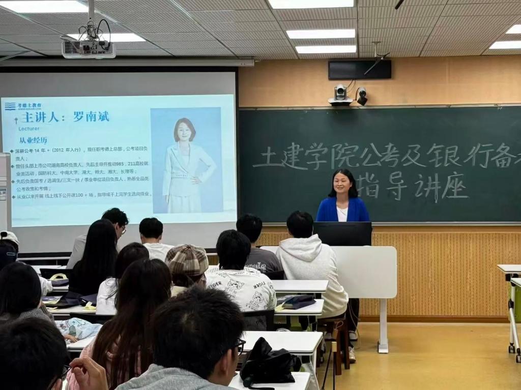 为帮助学生明晰公考与银行备考思路、规划职业方向,9 月 23 日下午,土建学院于土建楼 A401 举办公考及银行备考指导讲座。学院各专业大三、大四有备考需求的学生参与此次活动,讲座由深耕公考领域的罗南斌老师主讲。