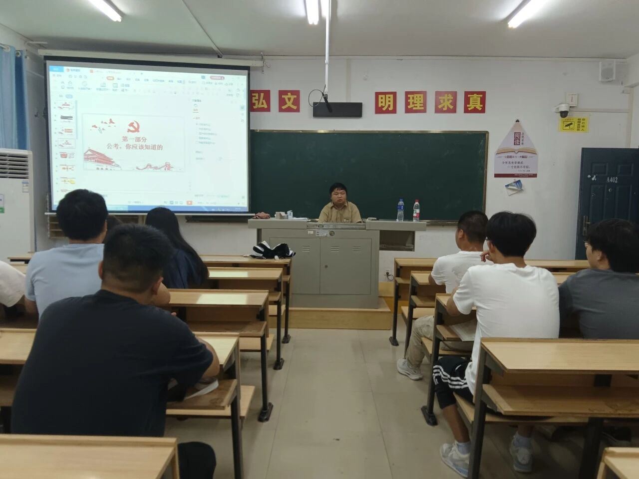 为帮助学生明晰公考与就业考试方向、提升求职竞争力,9 月 17 日下午,湖南文理学院大学生谋职赋能训练中心 2025年秋季公考辅导校园行在土建学院顺利举行。招生就业处就业教育科科长兼校大学生谋职赋能训练中心教师胡文玮老师、学院学工办易烁文老师出席活动,土建学院有求职备考需求的学生志愿参加了本次活动。本次活动由学工办易烁文老师主持。