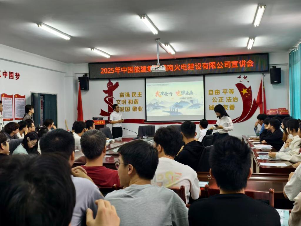 为帮助学生直观了解企业岗位需求,明确个人发展路径。9月24日下午,土建学院邀请中国能源建设集团湖南火电建设有限公司于土建楼A318进行土建类招聘宣讲会,聚焦行业需求、岗位要求及帮助学生个人发展指导。
