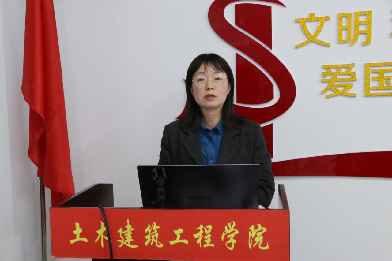 刘双书记对本次会议进行总结发言。她表示,实习是将课堂知识与现场实践、理论与现实、技术应用与实际提升相结合的过程,呼吁同学们积极利用资源,主动寻找实习机会。刘双书记对正处于职业探索关键期的土建学子提出三点希望:一是培养专业情怀,激励同学们找到对专业的自信与责任使命,即便未来专业与职业不完全匹配,也要坚守对专业的初心;二是提升学习动力,在就业形式复杂的当下更要注重知识技能的全方位发展和交叉融合,避免在知识学习上被淘汰;三是坚持问题导向,在实习中发现问题并及时弥补知识积累的不足,珍惜大学宝贵的学习机会,不忘入学初心,不断提升自己。